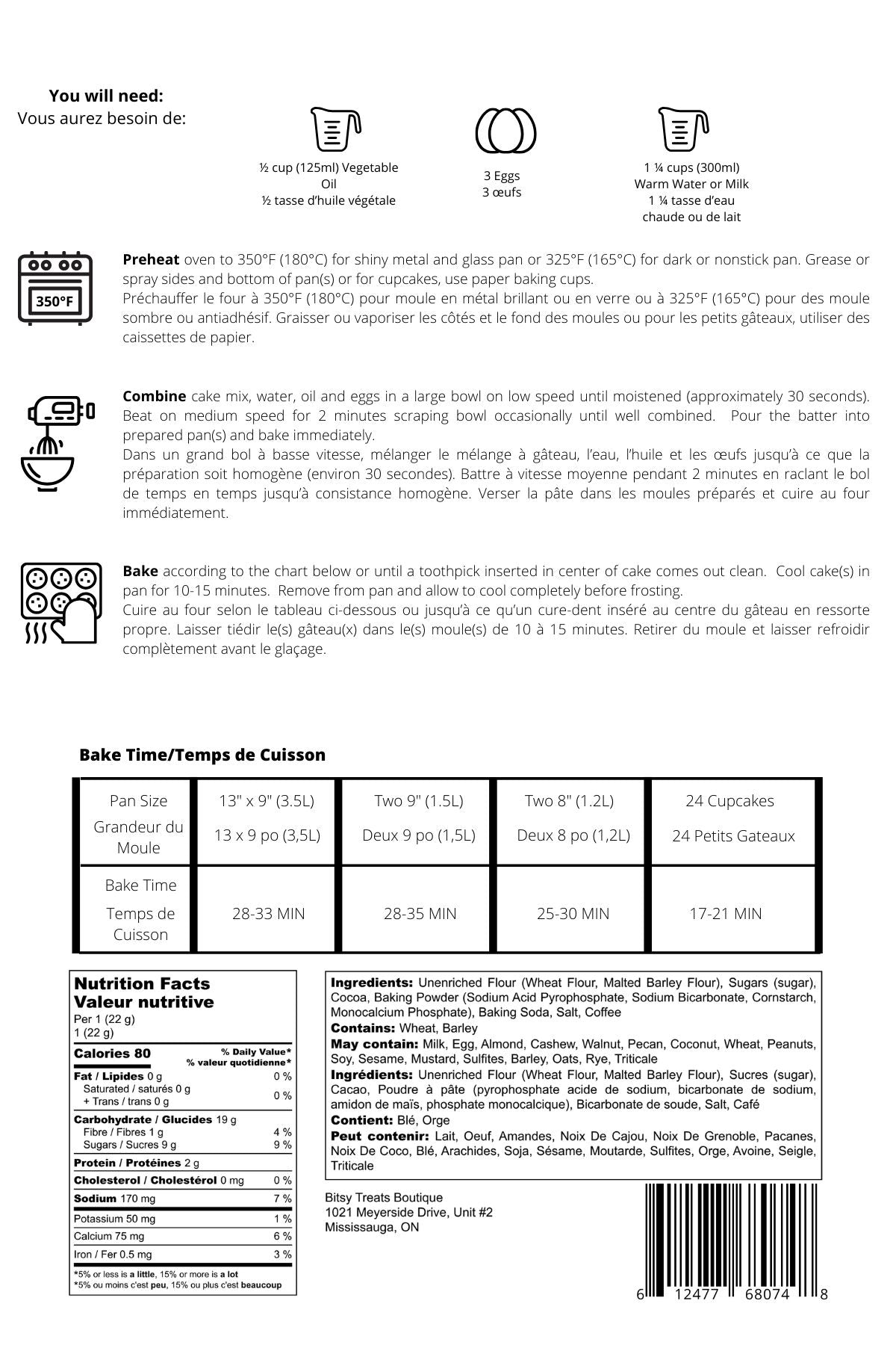 Indulge in the decadent flavor of our Canadian-made chocolate cake mix, designed to elevate your baking experience to new heights. Whether you're a seasoned baker or just starting out, our mix offers an easy baking solution that guarantees a moist and rich chocolate cake every time. The versatility of this mix allows you to get creative - bake cupcakes, layer cakes, or even add a twist to your favorite brownie recipe. Embrace the convenience and deliciousness of our chocolate cake mix, proudly crafted in Canada. Get ready to impress your friends and family with a delectable treat that's sure to satisfy every sweet craving!