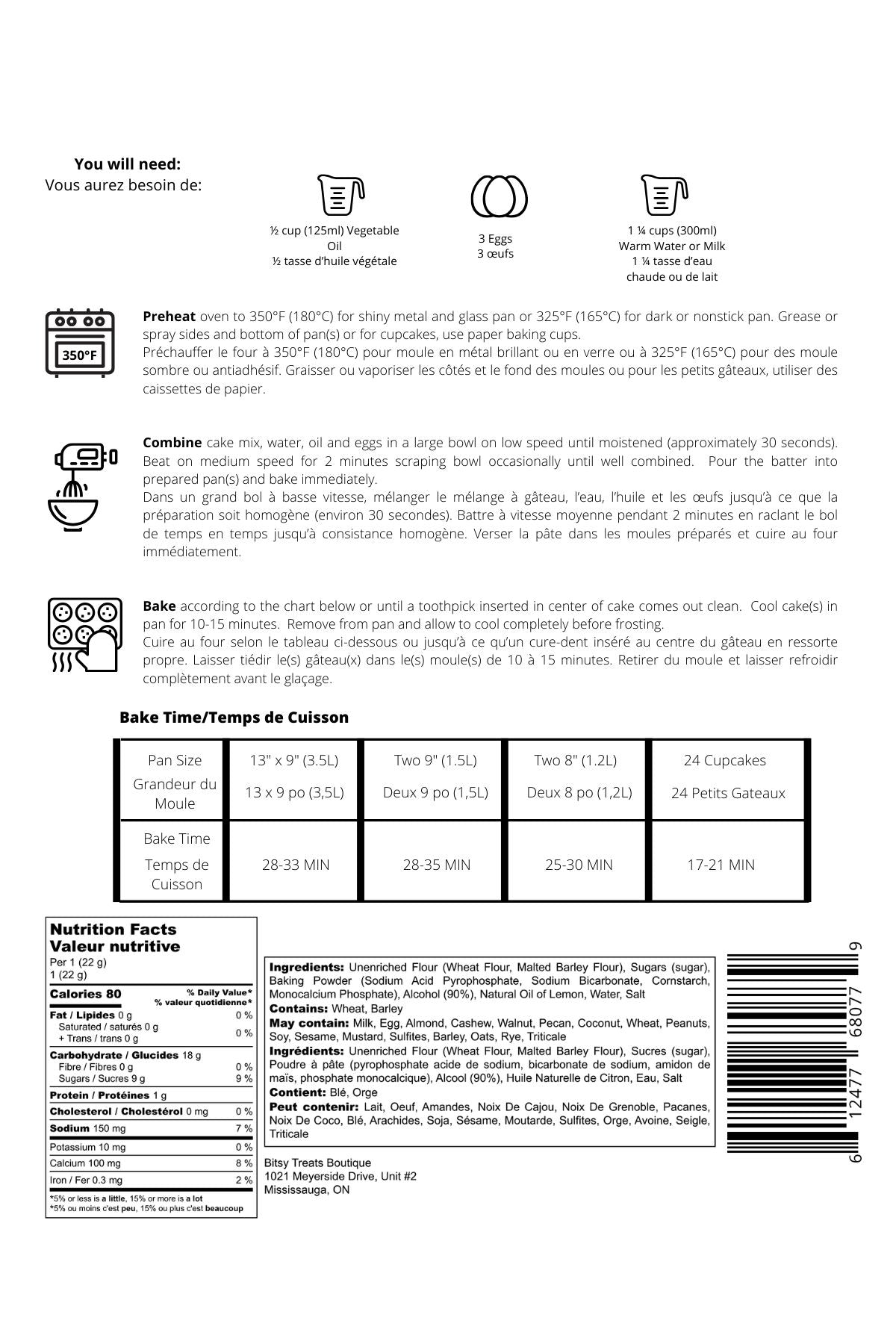 Brighten up your baking with Bitsy Treats Boutique’s Canadian-Made Lemon Cake Mix. Crafted with the finest ingredients sourced locally in Canada, this mix promises a light, zesty, and perfectly moist cake that bursts with refreshing lemon flavor. Whether you're hosting a special event, enjoying a quiet afternoon, or simply craving something sweet, this cake mix brings a tangy twist to any occasion.